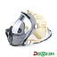 The full-face mask is a positive-pressure mask that adopts a single-eye window and a double-layer annular seal, and has the characteristics of wide vision and good transparency. The main frame of the face mask is made of silicone rubber material and has a small mouth nasal mask which is attached to the nose and mouth. It can enhance the full-face mask effective breathing space and reduce respiratory resistance. The face mask is made of polycarbonate, which is always clear, bright and fog-free during use. The head cover is connected with the fast clip with the tightening belt, and the tightening belt can be tightened to make the face mask double seal ring close to the wearer's face so as to ensure the safety of the user's breathing.
